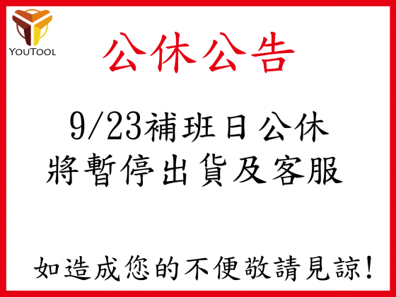 公休公告! 9/23補班日公休 將暫停出貨及客服 如造成您的不便敬請見諒!
